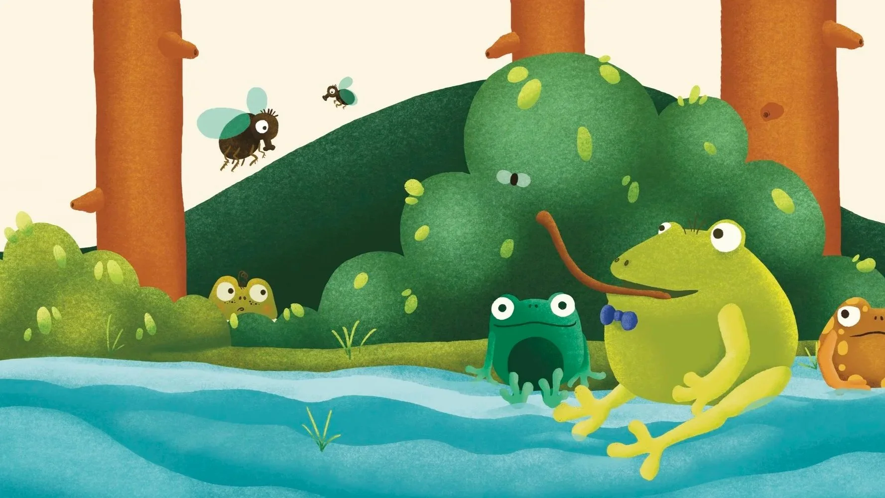 Ein existierendes Kinderbuch von Jane Clarke über einen ängstlichen Frosch.